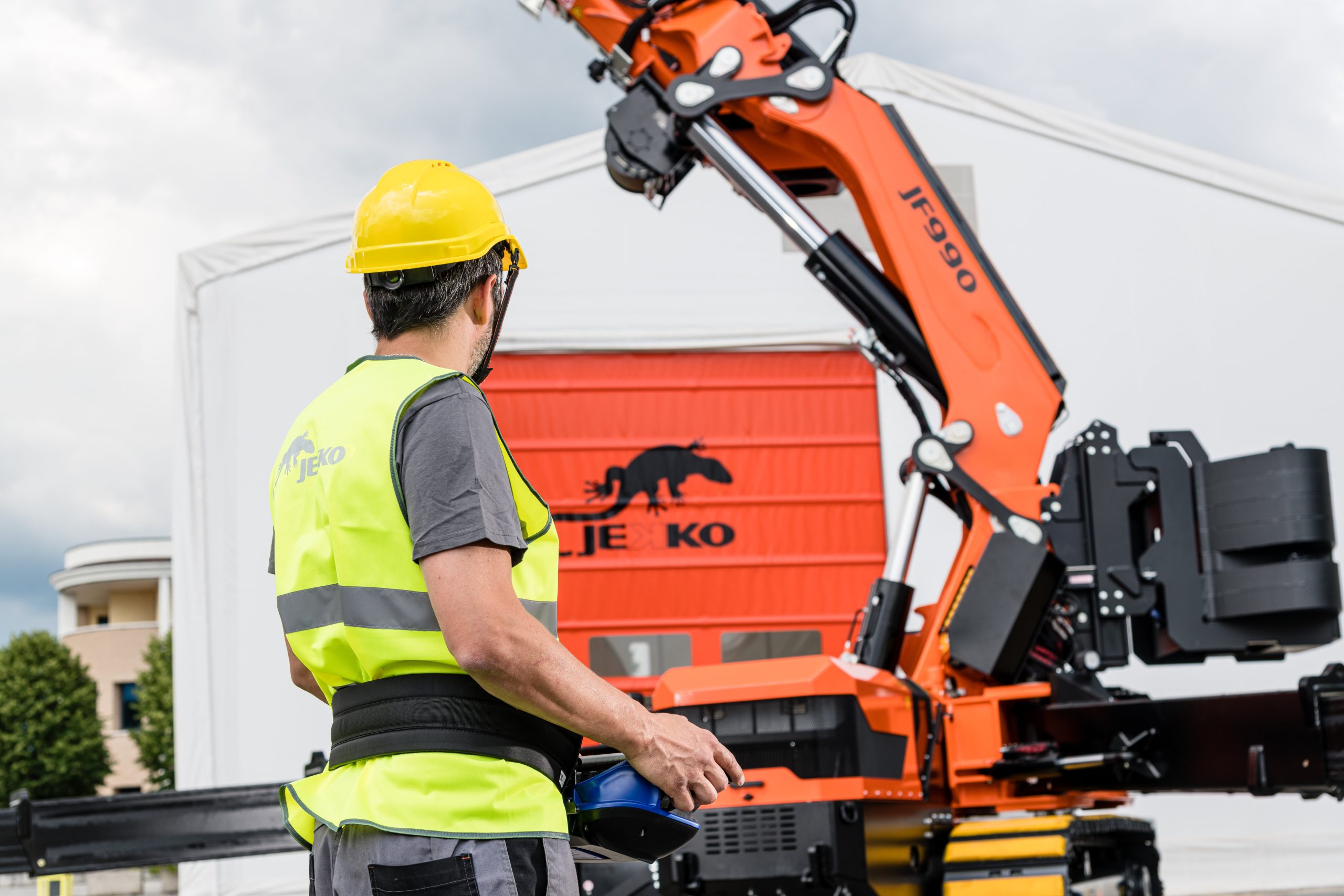 Beistet på arbeidsplassen din. JF990 knekkarmskranen kombinerer fleksibiliteten og kraften til en leddet kranarm med kompaktiteten og allsidigheten til en minikran med beltedrift. Denne avanserte modellen – med en løftekapasitet på opptil 21 tonn – skiller seg ut i markedet for leddkraner på grunn av sin allsidighet, presisjon og kompakte størrelse.